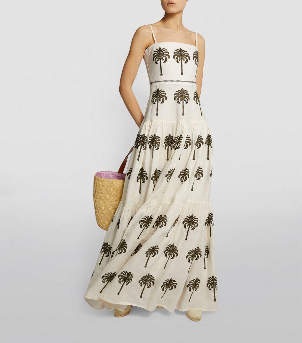 Agua By Agua Bendita Lima Palm Tree Embroidered Linen Maxi Dress Meghan Markle S Palm Tree Print Dress From Her Pregnancy Reveal Shoot Is Pure Magic Popsugar Fashion Photo 7